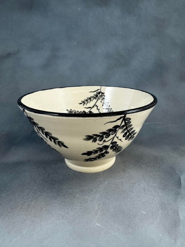 Each bowl features a striking two-tone glaze in white and black and showcases three signature nature motifs — Vines, Cattails, and Dragonflies — celebrating the peaceful charm of Southern craftsmanship. Every piece is individually glazed, ensuring each bowl is one-of-a-kind.