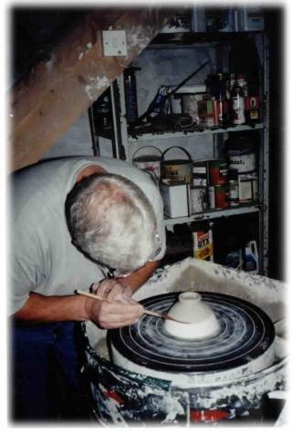 Fred decorating a bowl in the studio.